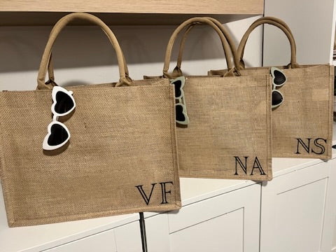 Add a nice touch to any celebration such as a bachelorette party, reunion, etc. by adding a personalized apparel accessory like a burlap tote bag, fanny pack, or a drawstring backpack.